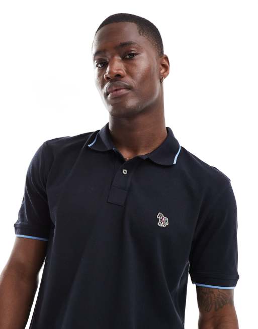 PS Paul Smith - Marineblå polo med logo og farvekanter i Regular Fit