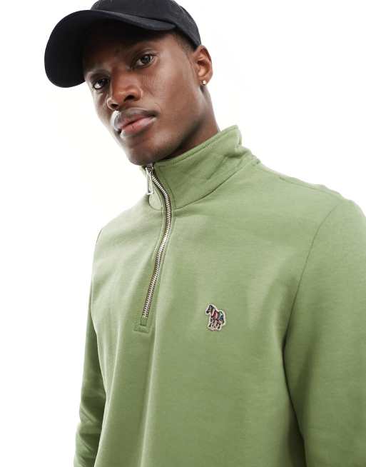 PS Paul Smith - Mørkegrøn sweatshirt med halv lynlås og zebra-ikonlogo