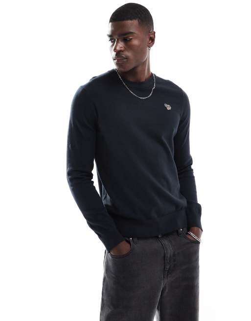 ps paul smith - Sort striktrøje med rund hals og ikonisk zebralogo
