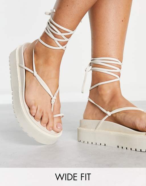 Public Desire Wide Fit - Bebe - Hvide flatform-sandaler med bindebånd om benet