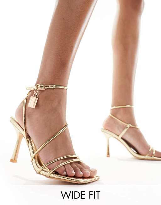 Public Desire Wide Fit - Emberly - Guldfarvede sko med mellemhøj hæl og hængelåsdetalje