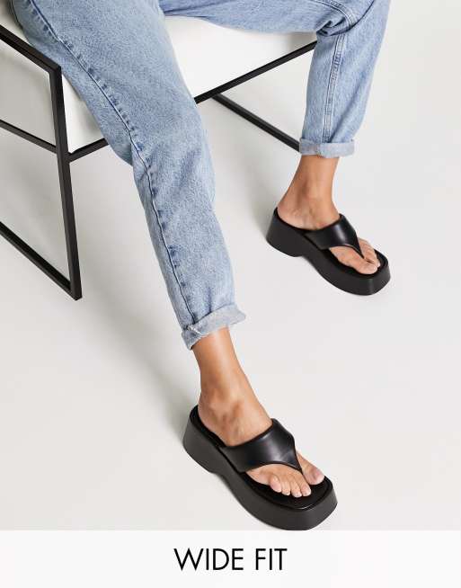 Public Desire Wide Fit - Kaye - Chunky flatform-sandaler i sort