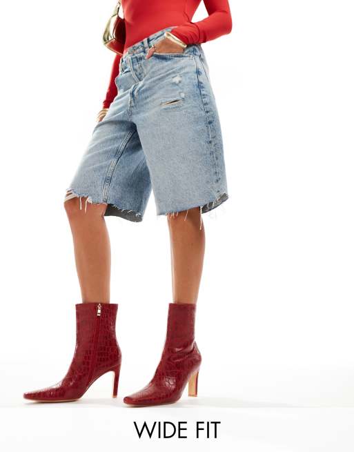 Public Desire Wide Fit - Polasris - Røde ankelstøvler med høj hæl og firkantet snude