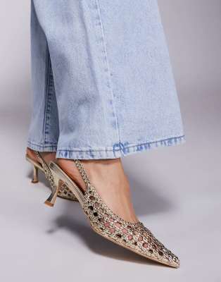 Public Desire Wide Fit - Thelma - Guldfarvede sko i flet med høj hæl og slingback-rem