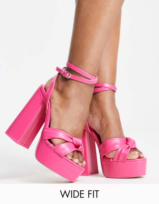 Public Desire Wide Fit - Verona - Chokpink plateau-sandaler med hæl