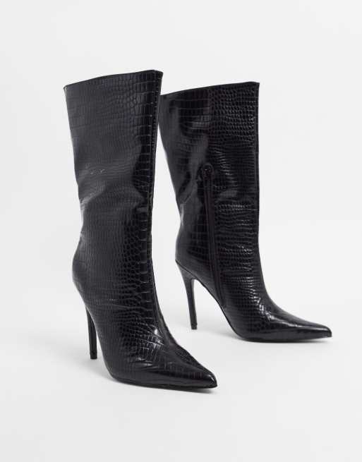 Public Desire - Estelle - Sorte pull on-støvler med krokodillemønster