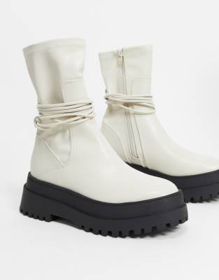 Public Desire - Finale - chunky flade ankelstøvler med bindedetalje