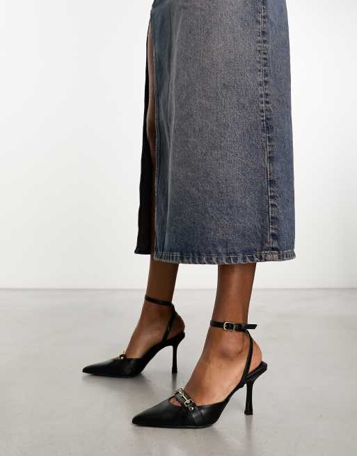 Public Desire - Sorte slingback-sko med guldfarvede metaldetaljer - Kun hos ASOS