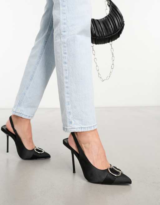 Public Desire - Spicy - Slingback-sko med hæl og metaldetaljer i sort satin