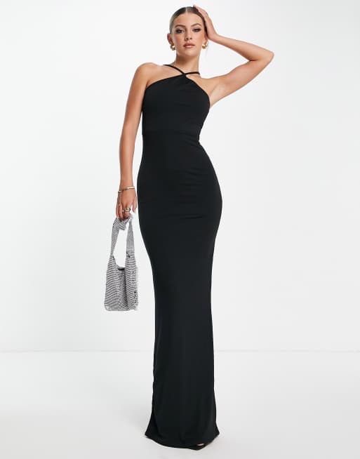 Public Desire - Stram maxikjole med halterneck og dobbeltlag i sort