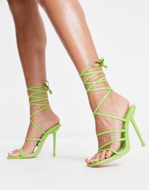 Public Desire - Teauge - Limefarvede sandaler med hæl og bindebånd om anklen