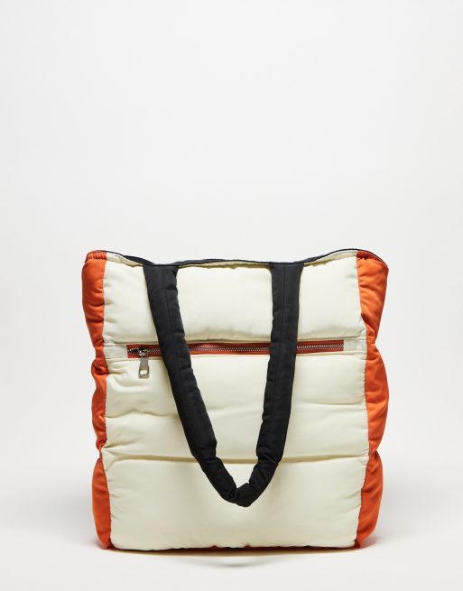 Public Desire - Triton - Beige tote med frontlomme og orange kant