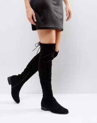 Sorte flade overknee-støvler fra Public Desire Elle