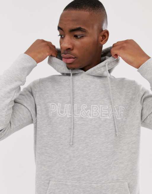 Grå hættetrøje med logo fra Pull&Bear