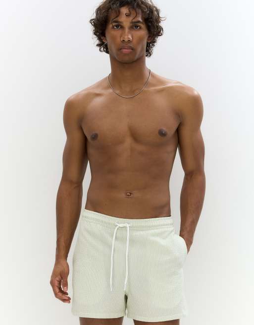 Pull&Bear - Badebukser i blegt grønt bæk-og-bølge-stof med striber