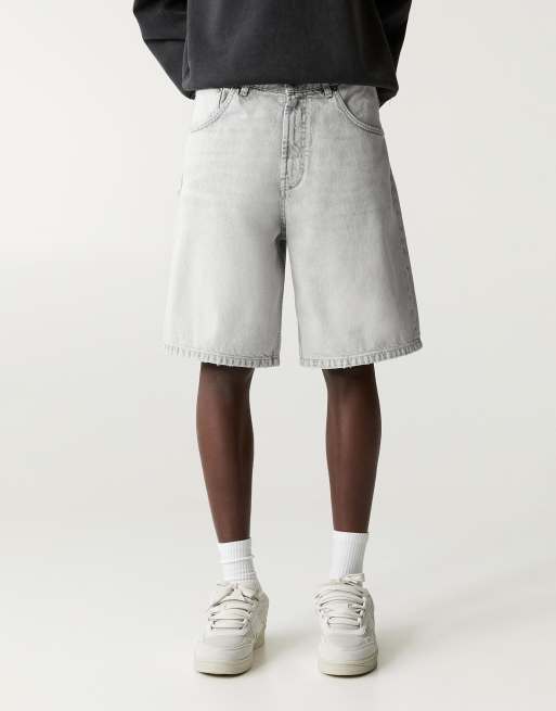 Pull&Bear - Baggy grå bermuda-denimshorts