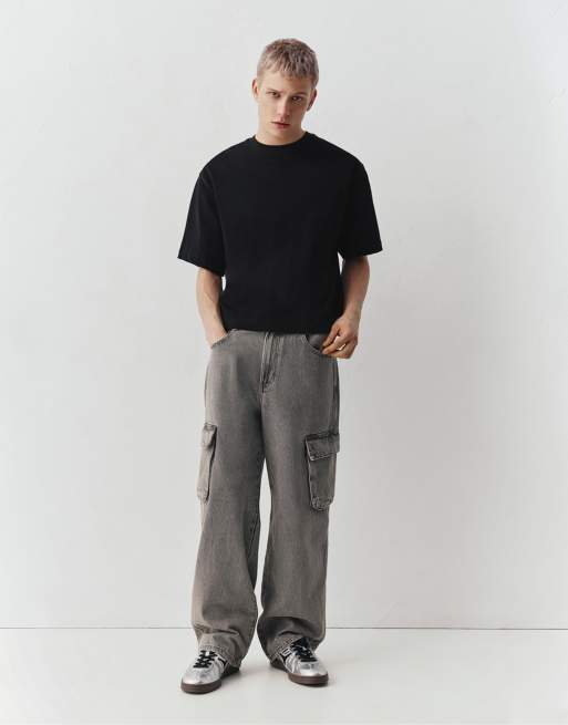 Pull&Bear - Baggy mørkegrå cargo-jeans