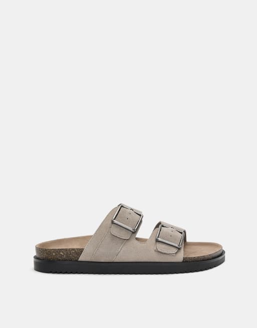 Pull&Bear - Beige flade badesandaler med spænder i læder