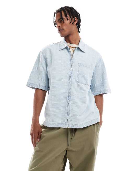 Pull&Bear - Blå denimskjorte med nistret tekstur