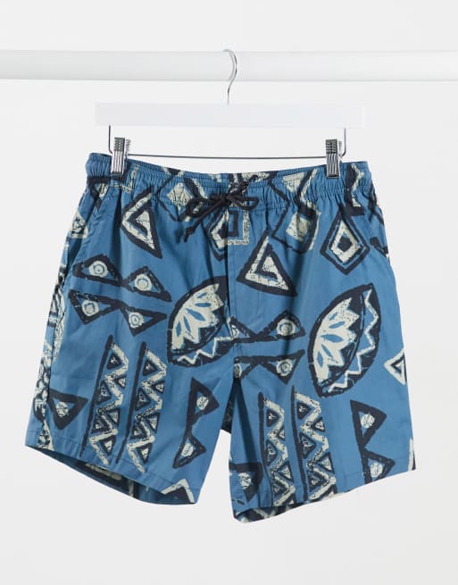 Pull&Bear - Blå shorts med abstrakt print