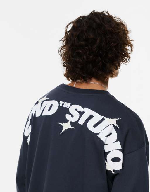 Pull&Bear - Blå T-shirt med lange ærmer og 'STWD'-logo
