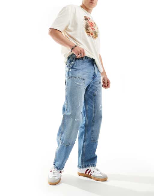 Pull&Bear - Blå tømrer-jeans med dobbeltknæ