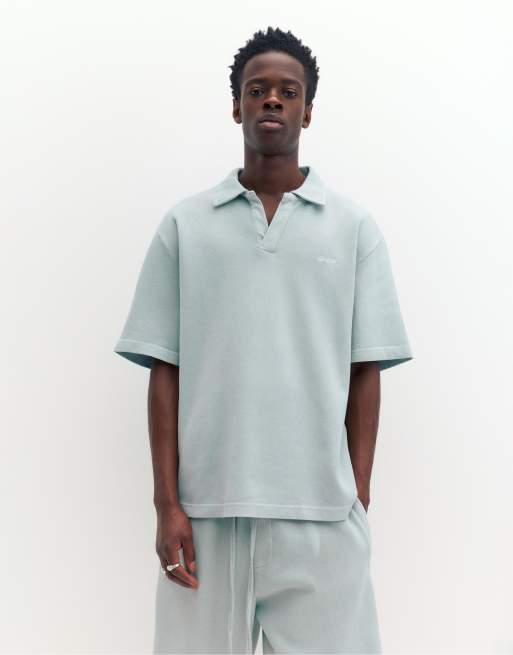 Pull&Bear - Blågrå kortærmer poloskjorte i piqué