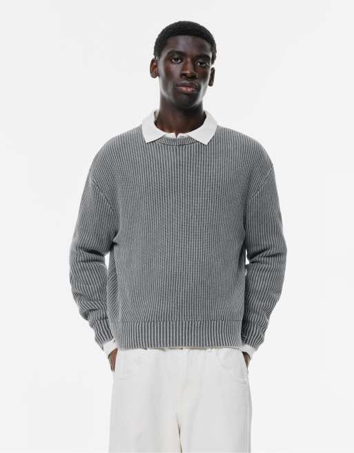Pull&Bear - Blålig sweater i falmet strik med syrevask
