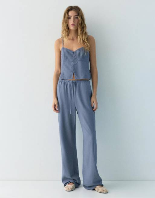 Pull&Bear - Blåt sæt sæt med blonder i hørblanding