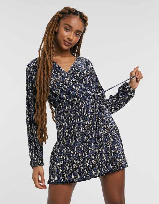 Pull&Bear - Blomstermønstret plisseret slå-om-kjole