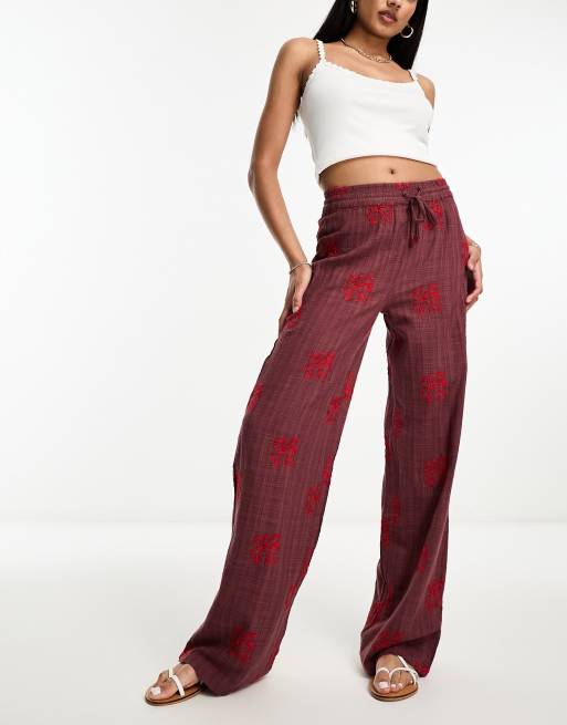 Pull&Bear - Boho - Afslappede bukser i rød - Del af sæt