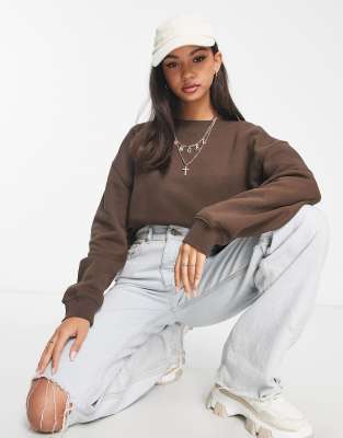 Pull&Bear - Brun basis-sweatshirt med rund hals