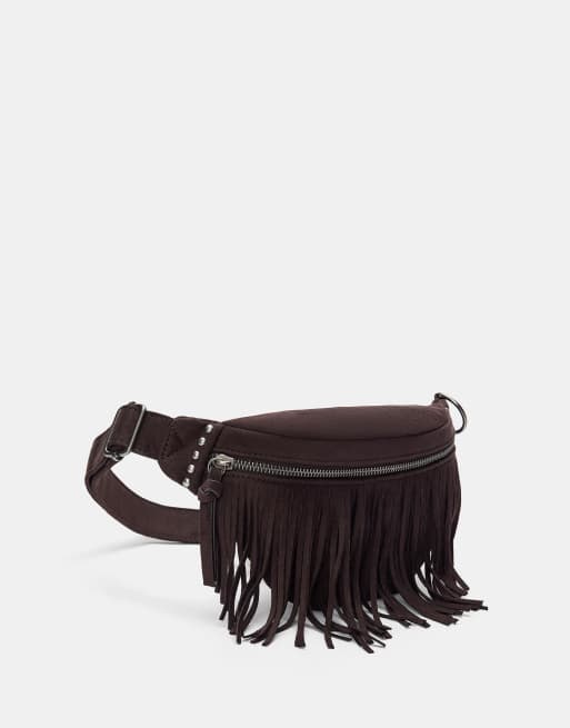 Pull&Bear - Brun bæltetaske med frynser