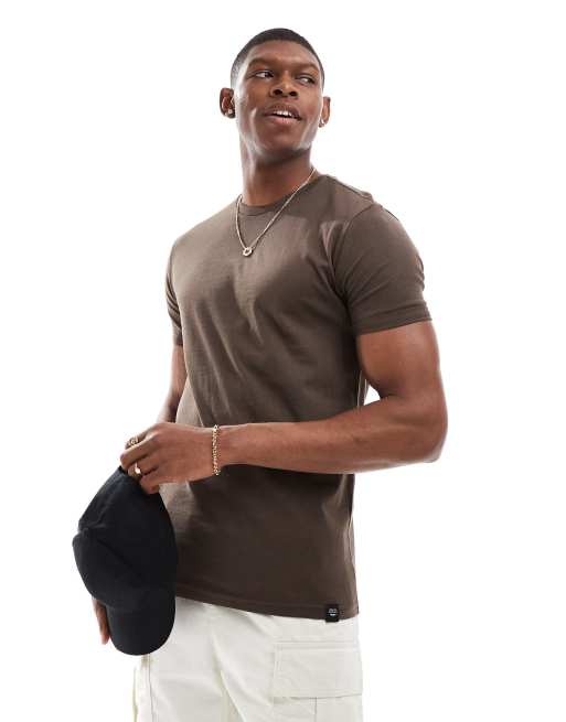 Pull&Bear - Brun og tætsiddende T-shirt