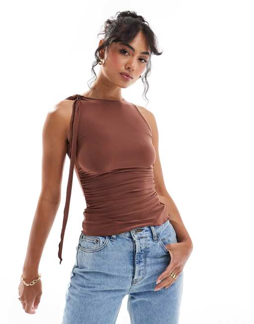 Pull&Bear - Brun overdel med flæsedetalje og uden ærmer