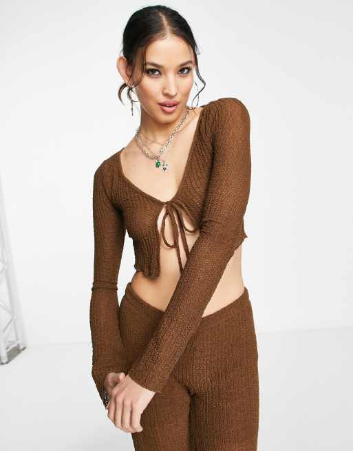 Pull&Bear - Brun top med bindebånd foran - Del af sæt