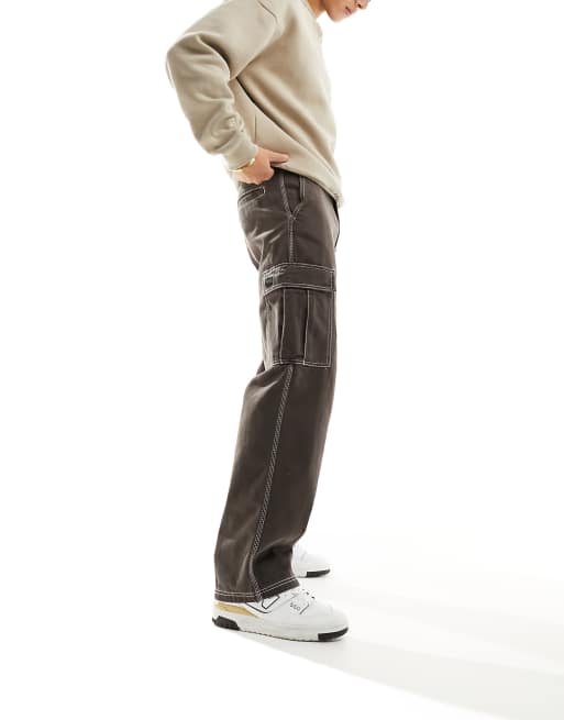 Pull&Bear - Brune cargobukser med kontrastsømme