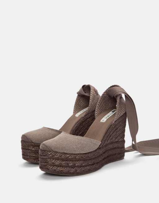 Pull&Bear - Brune espadrille-sko med kilehæl