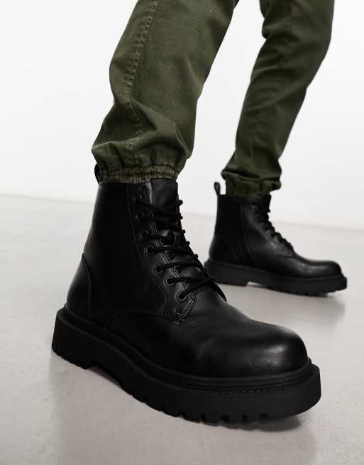 Pull&Bear - Chunky militær-støvler med snørebånd i sort