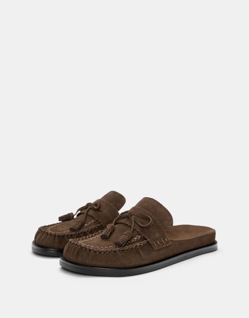 Pull&Bear - Clogs i læder med kvaster i pink nuancer