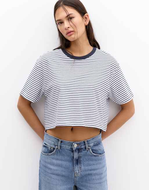 Pull&Bear - Cropped cropped kortærmet T-shirt med striber