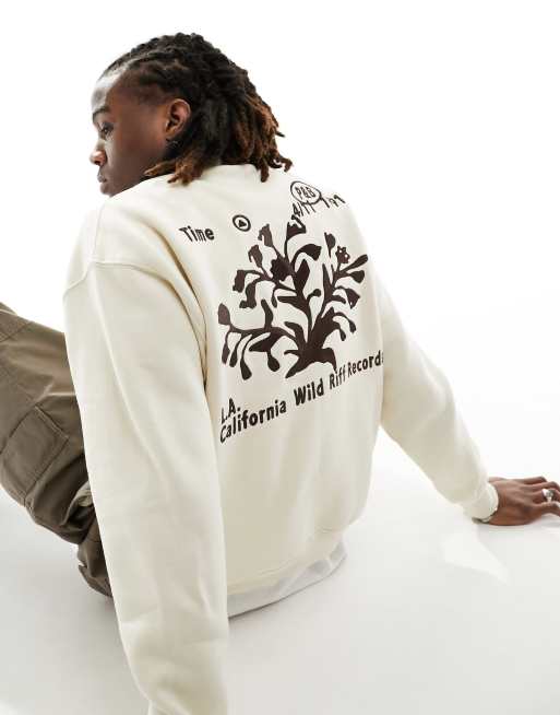 Pull&Bear - Ecru sweatshirt med "California Wildlife"-print på ryggen