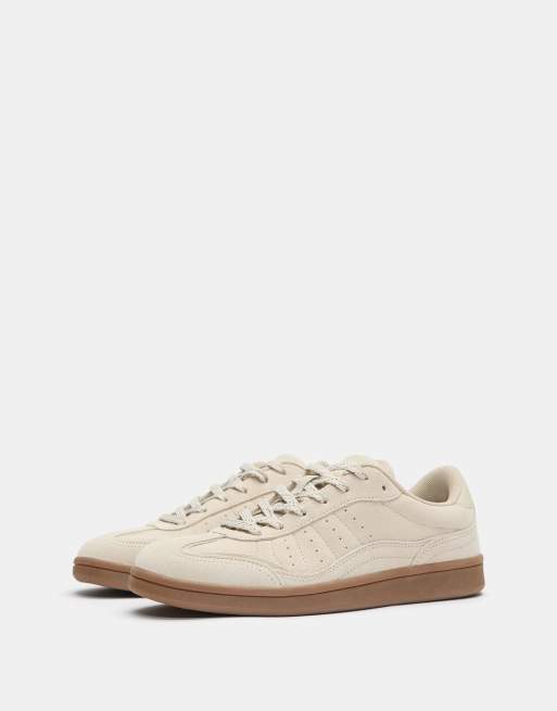 Pull&Bear - Ecrufarvede sneakers i læder