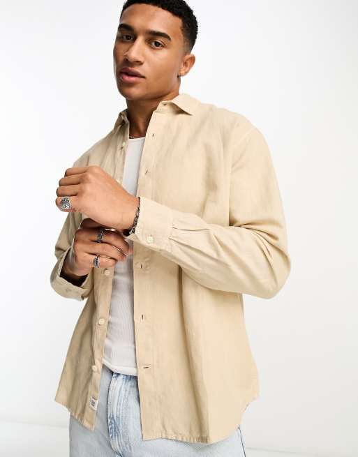 Pull&Bear - Ecrufarvet skjorte med lange ærmer i hør