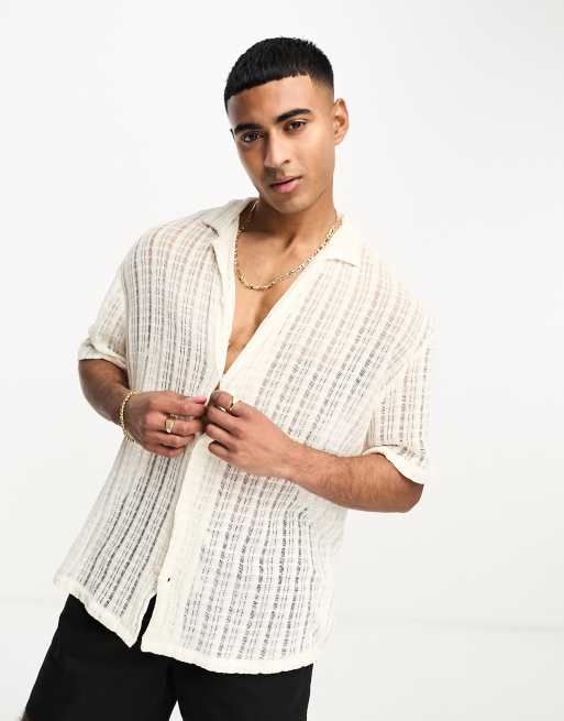 Pull&Bear - Ecrufarvet skjorte med striber i hulstrik