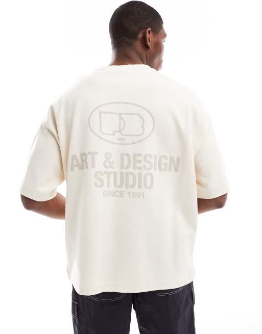 Pull&Bear - Ecrufarvet T-shirt med 'Art & Design Studio'-grafik