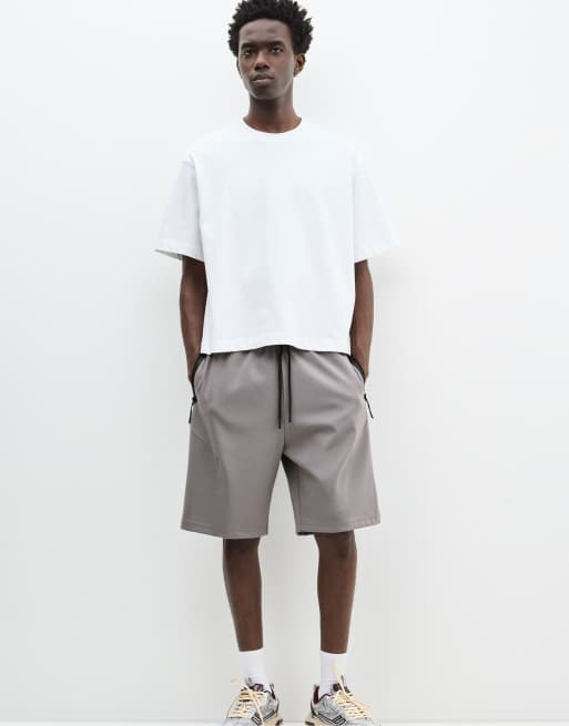 Pull&Bear - Grå bermuda-joggingshorts med interlock-sømdetaljer