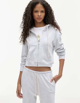 Pull&Bear - Grå hættetrøje med lynlås