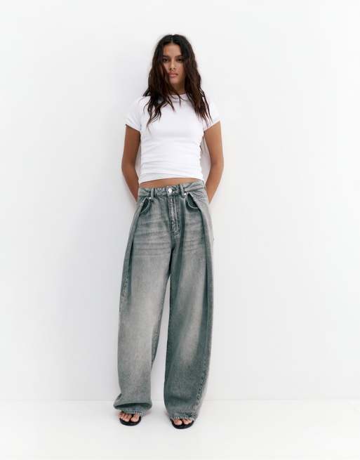 Pull&Bear - Grå posede jeans med plisseringer og ballonpasform