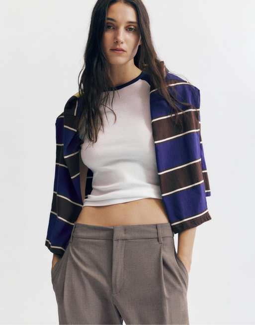 Pull&Bear - Gråbrune skræddersyede bukser med indsnit
